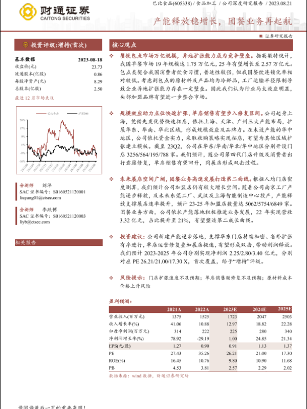 【财通证券】【20230821】巴比食品(605338)产能释放稳增长,团餐业务再起航-28页 行业研究