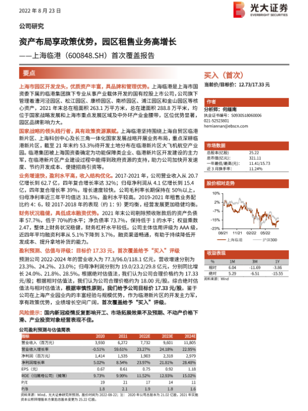 【光大证券】【20220823】资产布局享政策优势,园区租售业务高增长——上海临港(600848.SH)首次覆盖报告-20页 行业研究