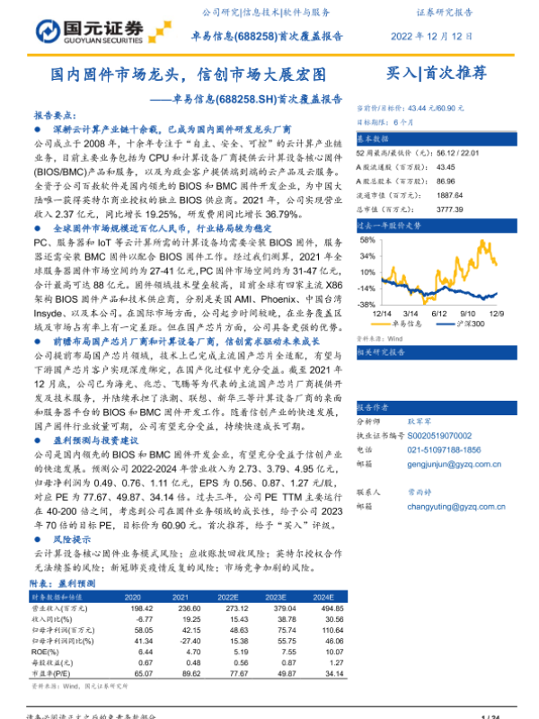 【国元证券】【20221212】卓易信息首次覆盖报告:国内固件市场龙头,信创市场大展宏图-24页 公司研究