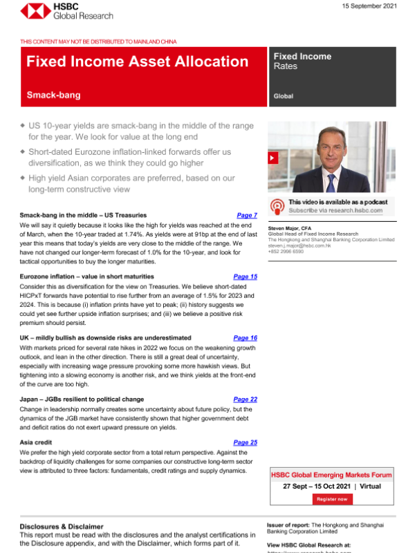 【The Hongkong and Shanghai Banking Corporation Limited】【20210915】HSBC-全球投资策略-固定收益资产配置-39页 行业研究