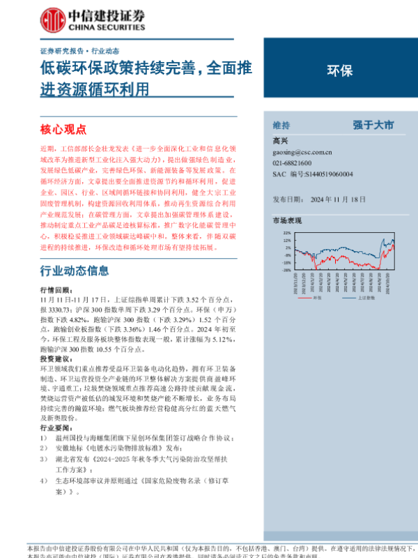 【中信建投证券】【20241118】2024年11月29日更新-【中信建投】环保行业:低碳环保政策持续完善,全面推进资源循环利用-12页 行业研究