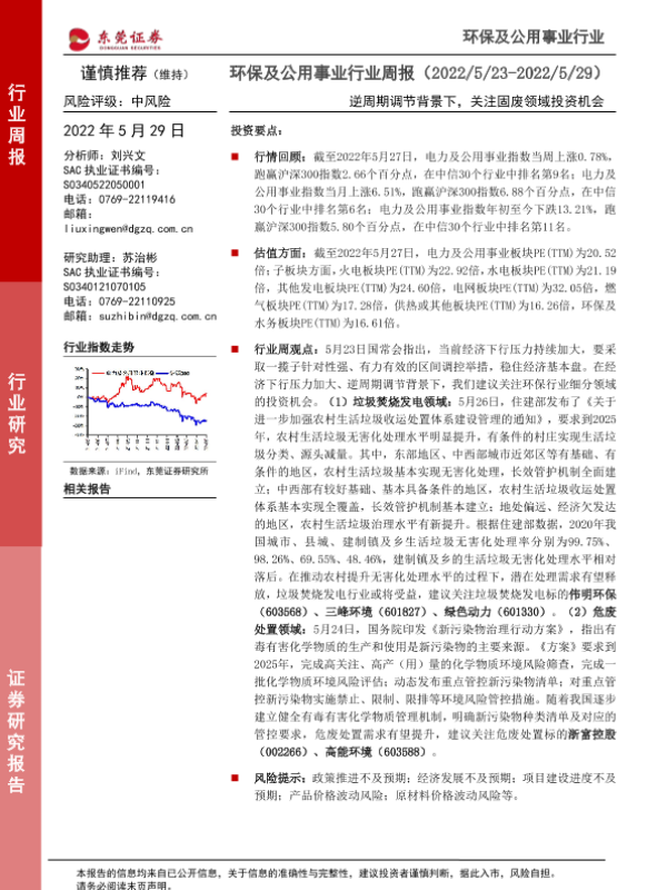 【东莞证券】【20220529】环保及公用事业行业周报:逆周期调节背景下,关注固废领域投资机会-11页 行业研究