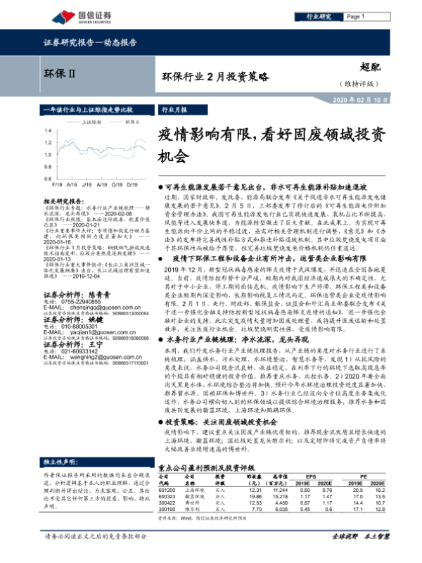 【国信证券】【20200210】2月投资策略:疫情影响有限,看好固废领域投资机会-15页 行业研究