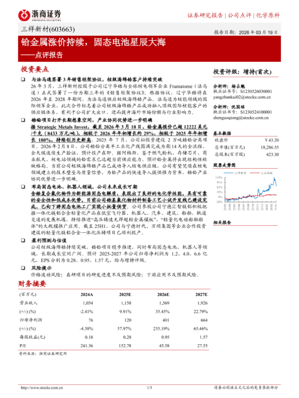 【浙商证券】【202603】三祥新材-603663.SH-点评报告_铪金属涨价持续_固态电池星辰大海-3页 证券期货研究报告