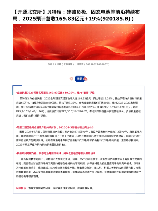 【开源证券】【202603】北交所信息更新:硅碳负极、固态电池等前沿持续布局,2025预计营收169.83亿元+19%-4页 证券期货研究报告