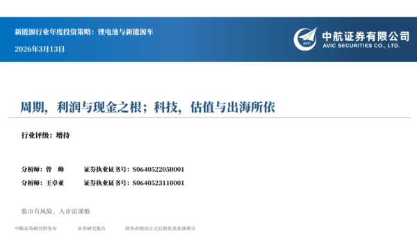 【中航证券】【202603】周期,利润与现金之根;科技,估值与出海所依-31页 证券期货研究报告