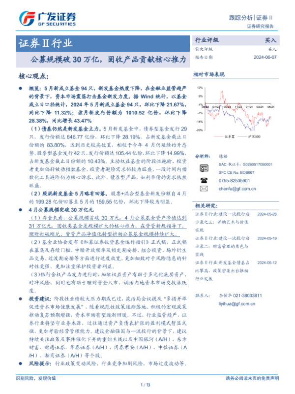 【广发证券】【20240607】公募规模破30万亿,固收产品贡献核心推力-13页 行业研究