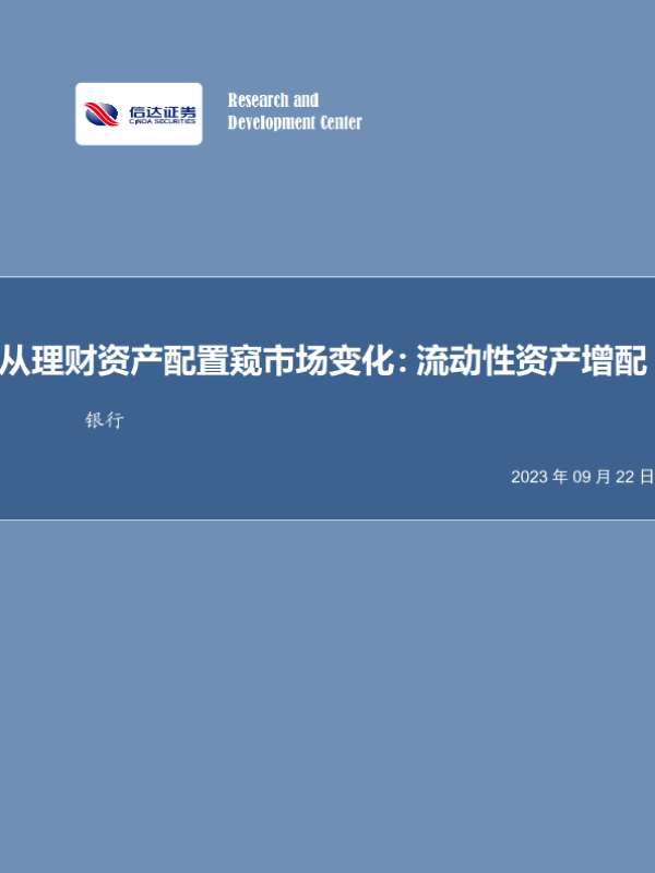 【信达证券】【20230922】从理财资产配置窥市场变化:流动性资产增配-37页 行业研究