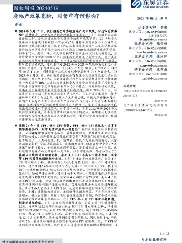 【东吴证券】【20240519】固收:房地产政策宽松,对债市有何影响?-33页 行业研究