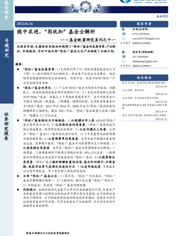 【国泰君安证券】【20220216】稳中求进,“固收加”基金全解析-19页 行业研究