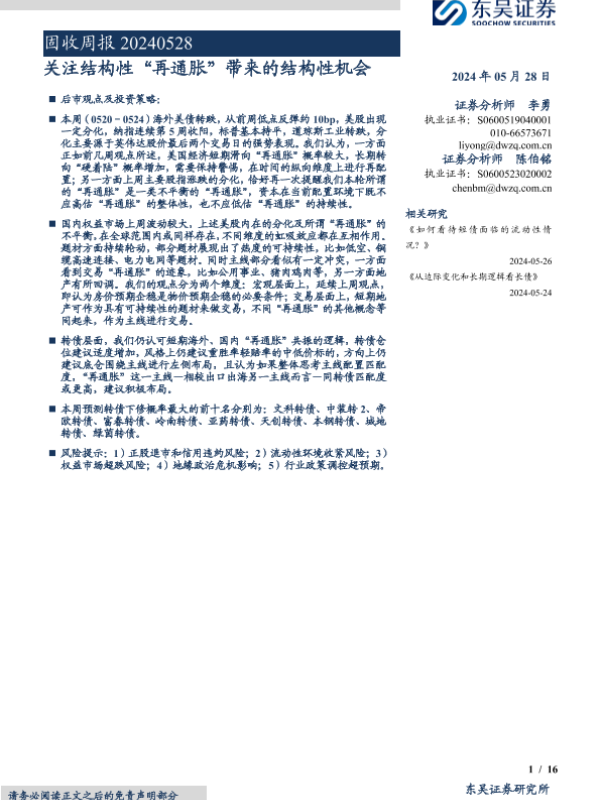 【东吴证券】【20240528】固收:关注结构性“再通胀”带来的结构性机会-16页 行业研究