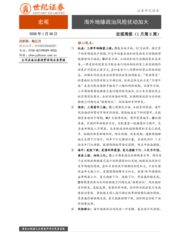 【世纪证券】【202401】宏观周报(1月第3周)-6页 证券期货研究报告