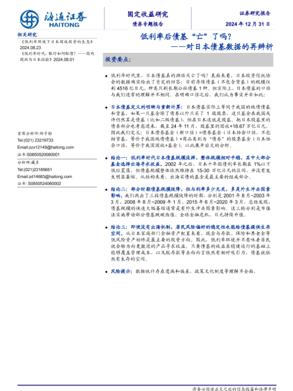 【海通证券】【20241231】对日本债基数据的再辨析:低利率后债基“亡”了吗?-11页 行业研究