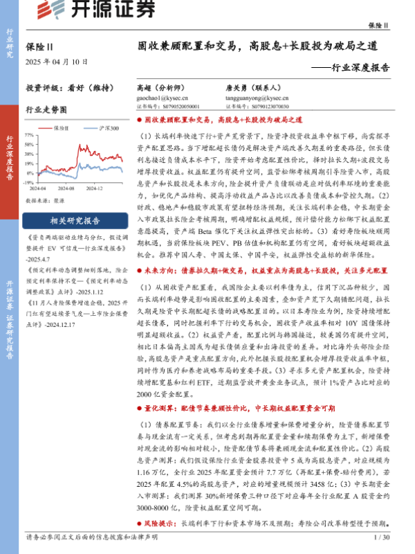 【开源证券】【20250410】保险Ⅱ行业深度报告:固收兼顾配置和交易,高股息+长股投为破局之道-30页 行业研究