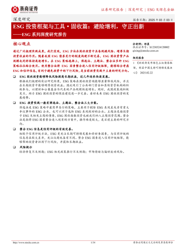 【浙商证券】【20250303】ESG投资框架与工具·固收篇:避险增利,守正出新-34页 行业研究
