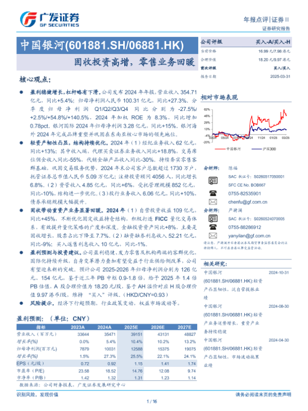 【广发证券】【20250331】中国银河(601881)固收投资高增,零售业务回暖-16页 证券期货研究报告