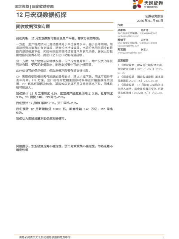 【天风证券】【20250106】固收数据预测专题:12月宏观数据初探-17页 行业研究