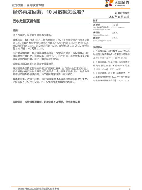 【天风证券】【20221031】经济再度回落,10月数据怎么看?-17页 行业研究