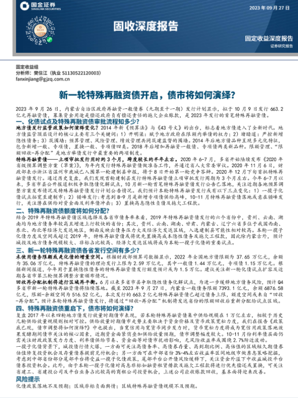 【国金证券】【20230927】固收深度报告:新一轮特殊再融资债开启,债市将如何演绎?-19页 行业研究