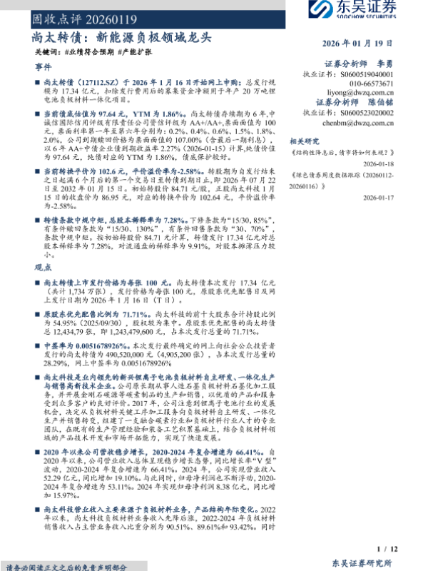 【东吴证券】【202601】尚太转债:新能源负极领域龙头-12页 证券期货研究报告