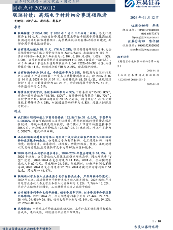 【东吴证券】【202601】联瑞转债:高端电子材料细分赛道领跑者-10页 证券期货研究报告
