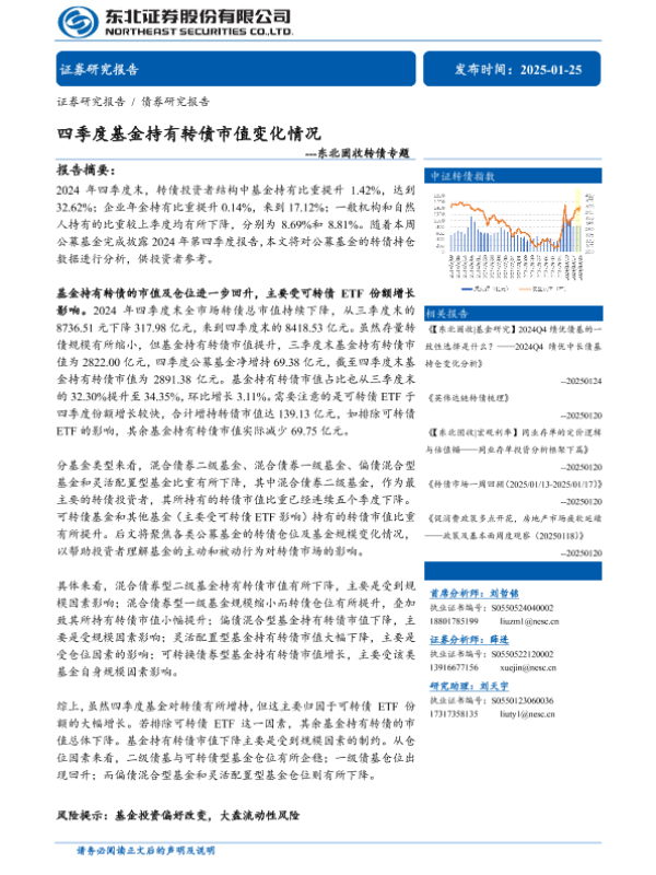 【东北证券】【20250125】固收转债专题:四季度基金持有转债市值变化情况-15页 行业研究