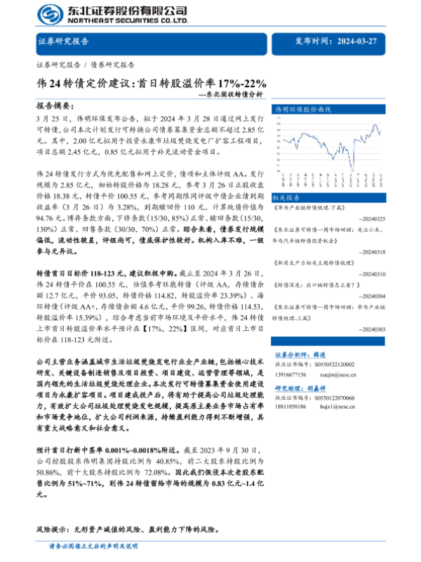 【东北证券】【20240327】固收转债分析-伟24转债定价建议:首日转股溢价率17%-22%-11页 行业研究