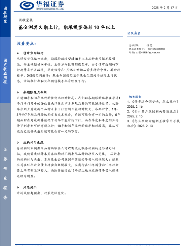 【华福证券】【20250217】固收量化:基金测算久期上行,期限模型偏好10年以上-13页 行业研究