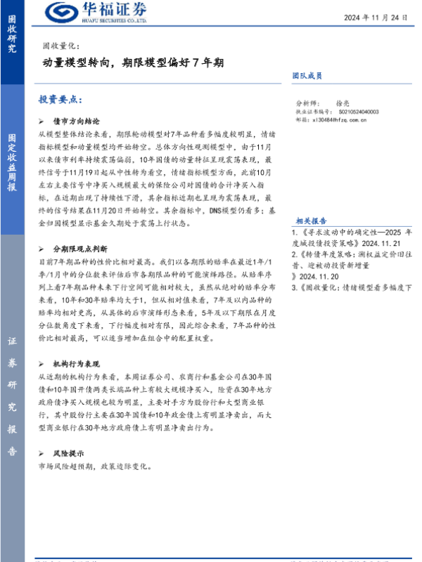 【华福证券】【20241124】固收量化:动量模型转向,期限模型偏好7年期-16页 行业研究