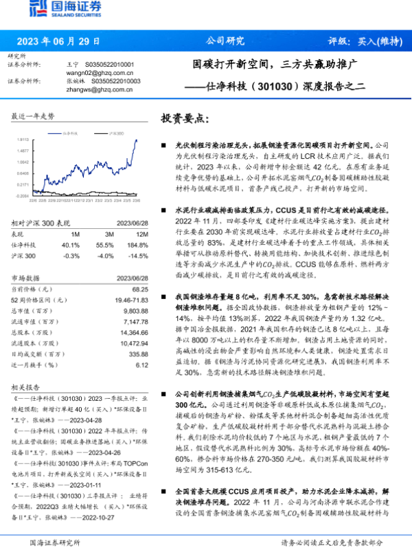 【国海证券】【20230629】仕净科技深度报告之二(301030):固碳打开新空间,三方共赢助推广-25页 行业研究