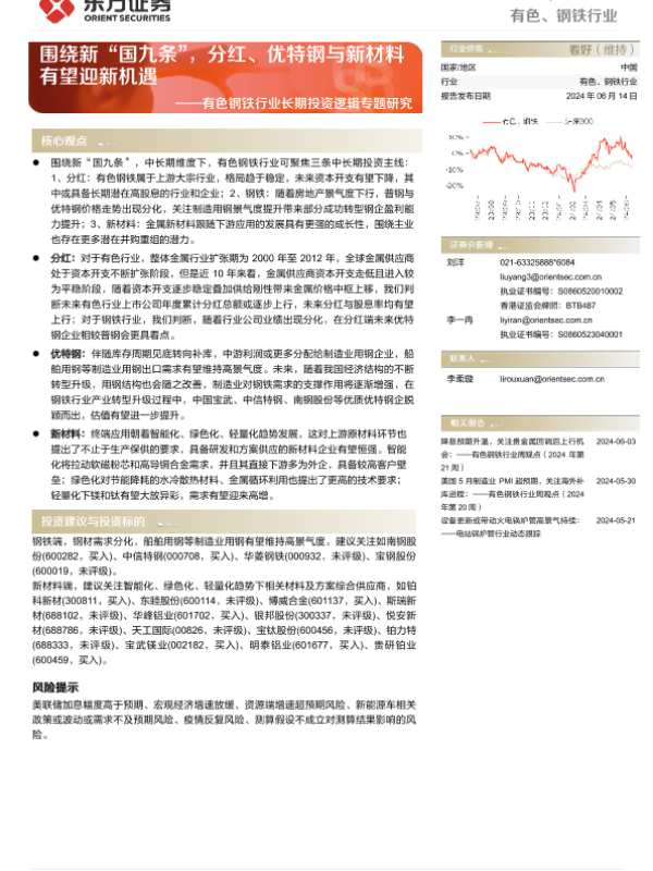 【东方证券】【20240614】20240614-东方证券-有色钢铁行业长期投资逻辑专题研究:围绕新“国九条”,分红、优特钢与新材料有望迎新机遇-27页 行业研究