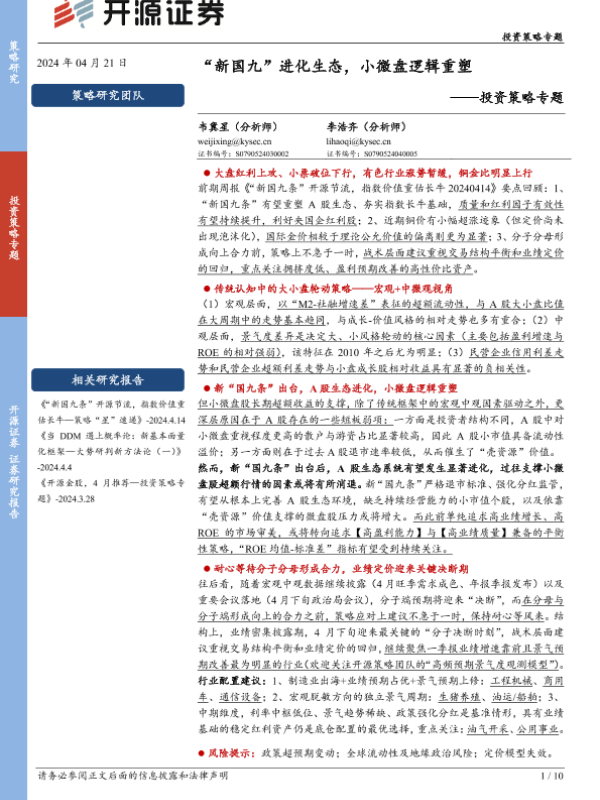 【开源证券】【20240421】投资策略专题:“新国九”进化生态,小微盘逻辑重塑-10页 行业研究