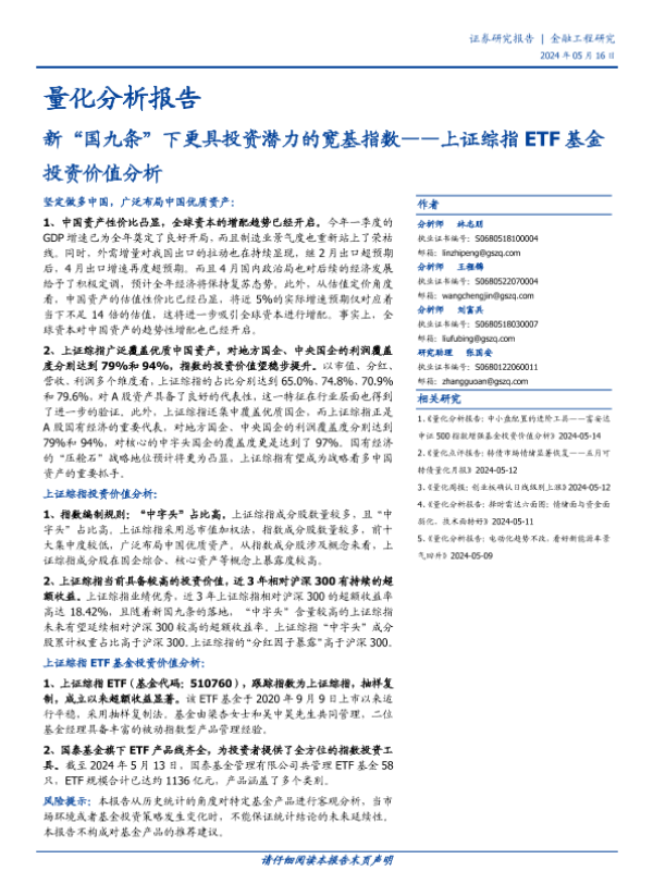 【国盛证券】【20240516】量化分析报告:上证综指ETF基金投资价值分析,新“国九条”下更具投资潜力的宽基指数-19页 行业研究