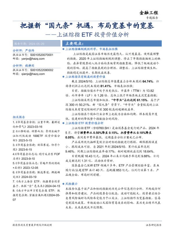 【华安证券】【20240529】上证综指ETF投资价值分析:把握新“国九条”机遇,布局宽基中的宽基-17页 行业研究