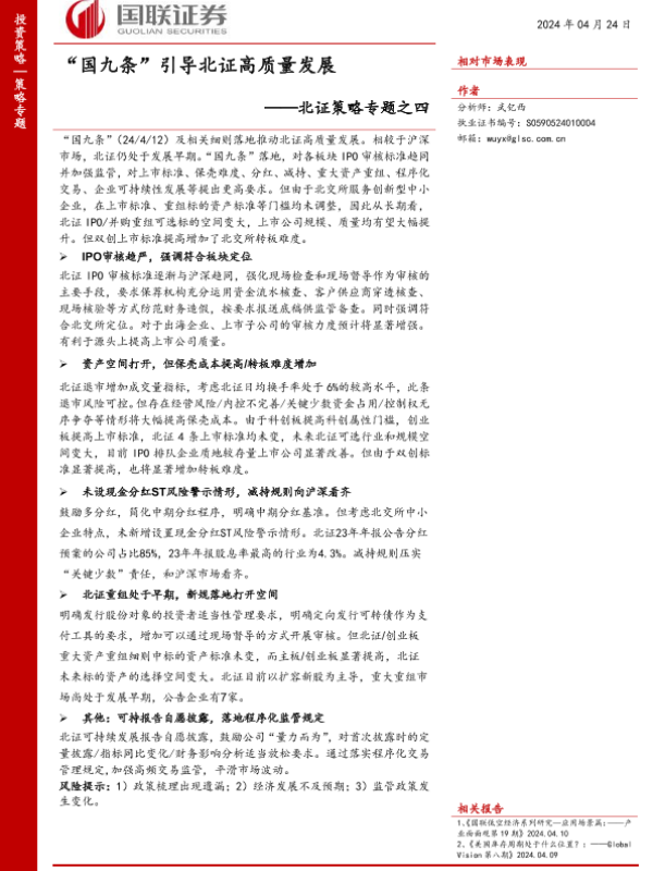【国联证券】【20240424】北证策略专题之四:“国九条”引导北证高质量发展-16页 行业研究