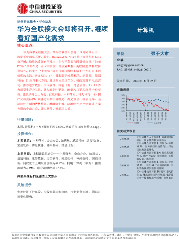 【中信建投证券】【20240825】计算机行业:华为全联接大会即将召开,继续看好国产化需求-11页 行业研究