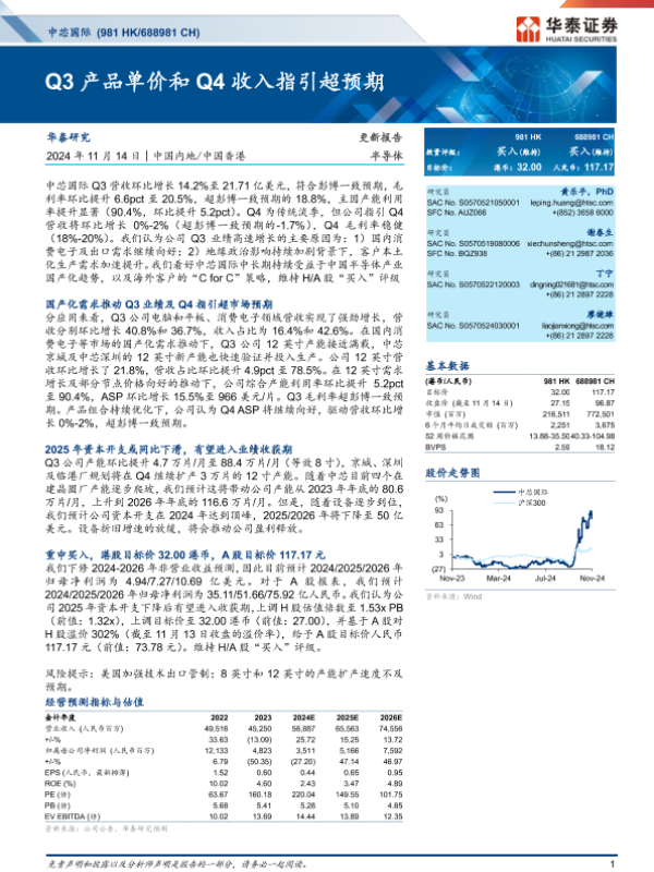 【华泰证券】【20241114】中芯国际(688981)Q3产品单价和Q4收入指引超预期-12页 行业研究