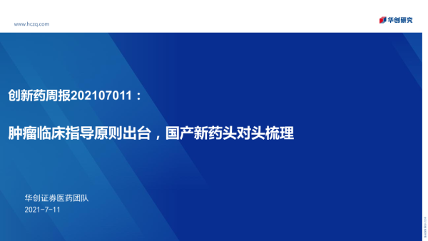 【华创证券】【20210711】创新药周报:肿瘤临床指导原则出台,国产新药头对头梳理-26页 行业研究