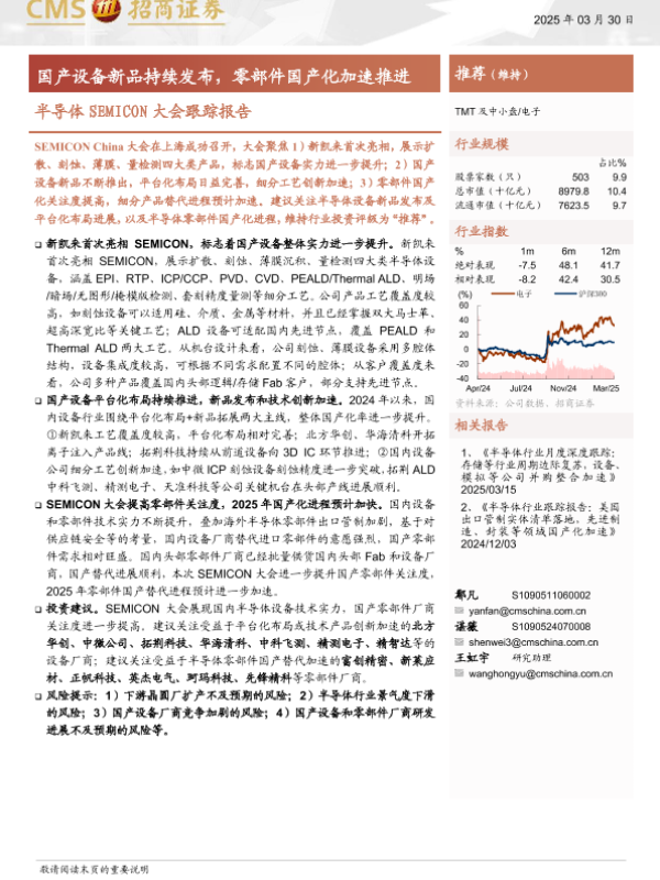 【海通证券】【20250330】半导体行业SEMICON大会跟踪报告:国产设备新品持续发布,零部件国产化加速推进-10页 行业研究