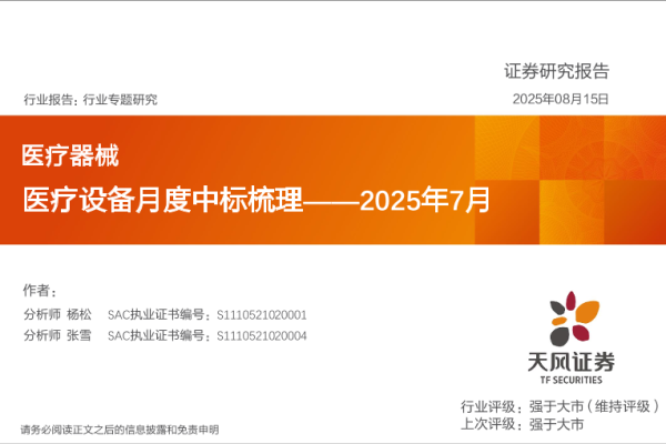 【天风证券】【20250815】医疗设备月度中标梳理——2025年7月-16页 证券期货研究报告