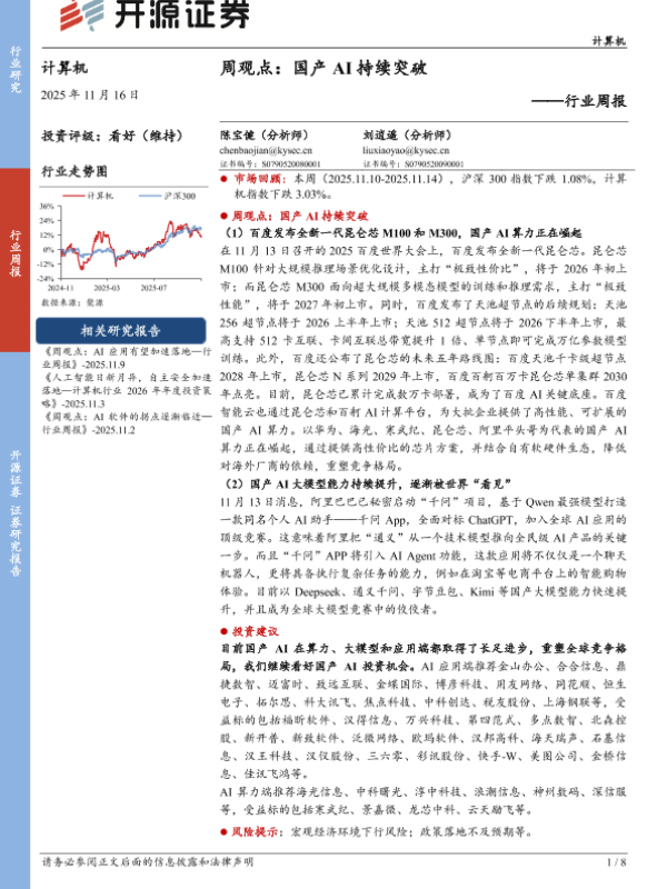 【开源证券】【202511】周观点:国产 AI持续突破-8页 证券期货研究报告