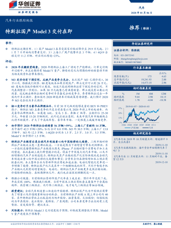 【华创证券】【20200106】汽车行业跟踪快报:特斯拉国产Model 3交付在即-3页 行业研究