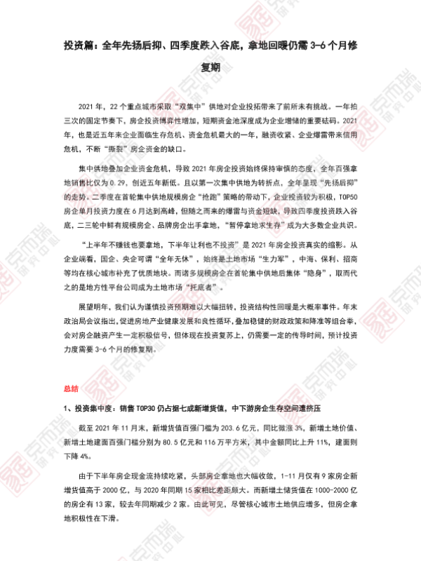【克而瑞研究中心】【2021】2021年中国房地产总结与展望 - 投资篇-8页 行业研究