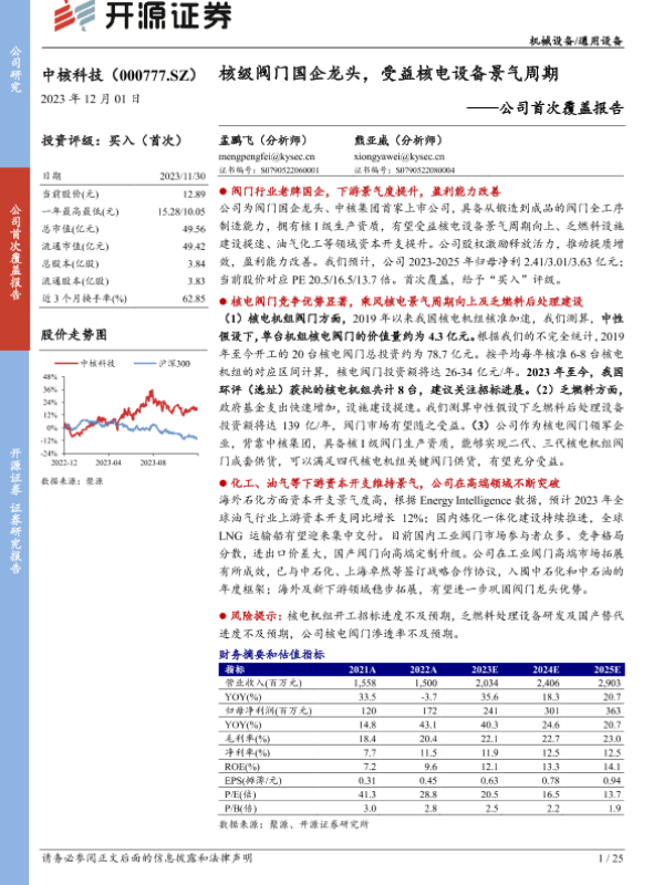 【开源证券】【20231201】中核科技-000777.SZ-公司首次覆盖报告:核级阀门国企龙头,受益核电设备景气周期-25页 行业研究