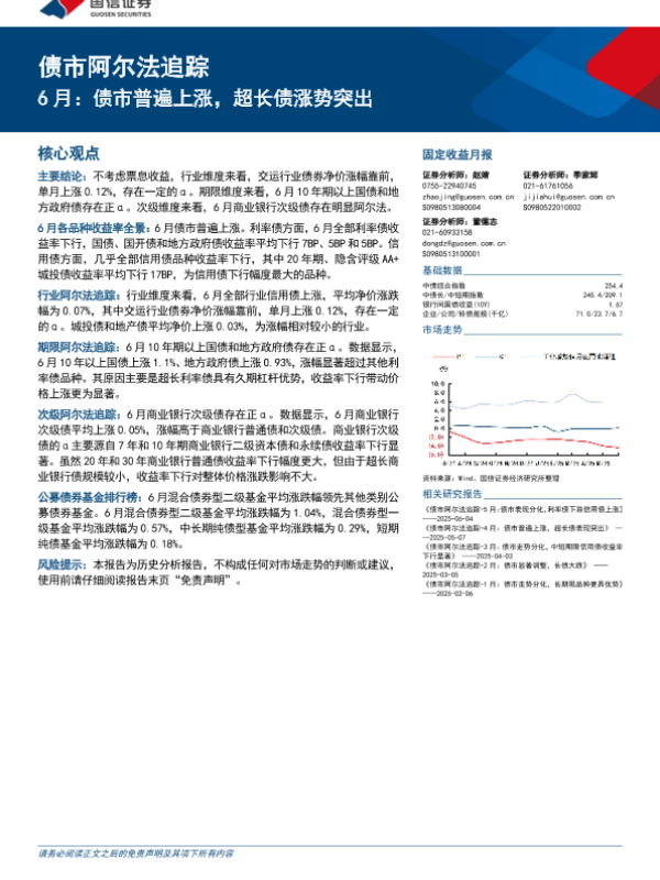 【国信证券】【20250713】债市阿尔法追踪:6月,债市普遍上涨,超长债涨势突出-15页 证券期货研究报告