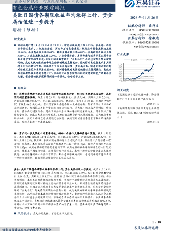 【东吴证券】【202601】美欧日国债各期限收益率均录得上行,贵金属估值进一步提升-18页 证券期货研究报告