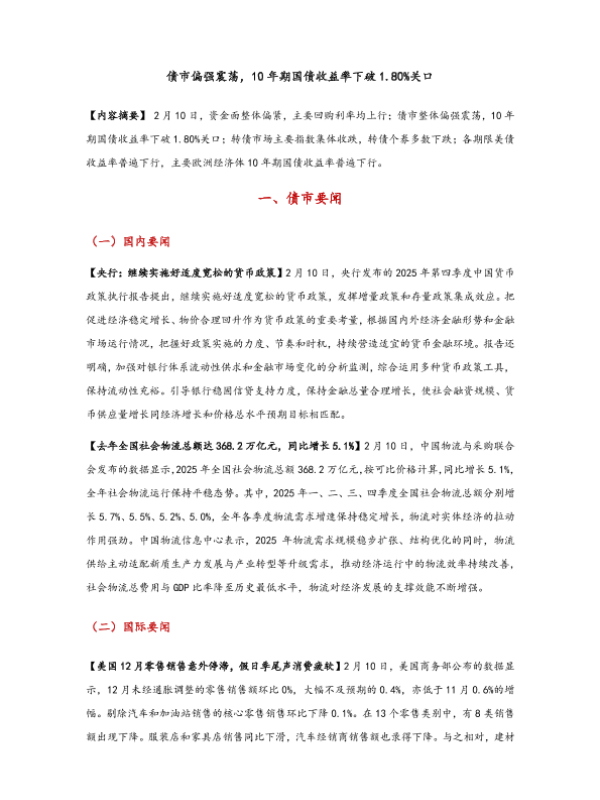 【东方金诚】【202502】债市偏强震荡_10年期国债收益率下破1.80_关口-7页 证券期货研究报告