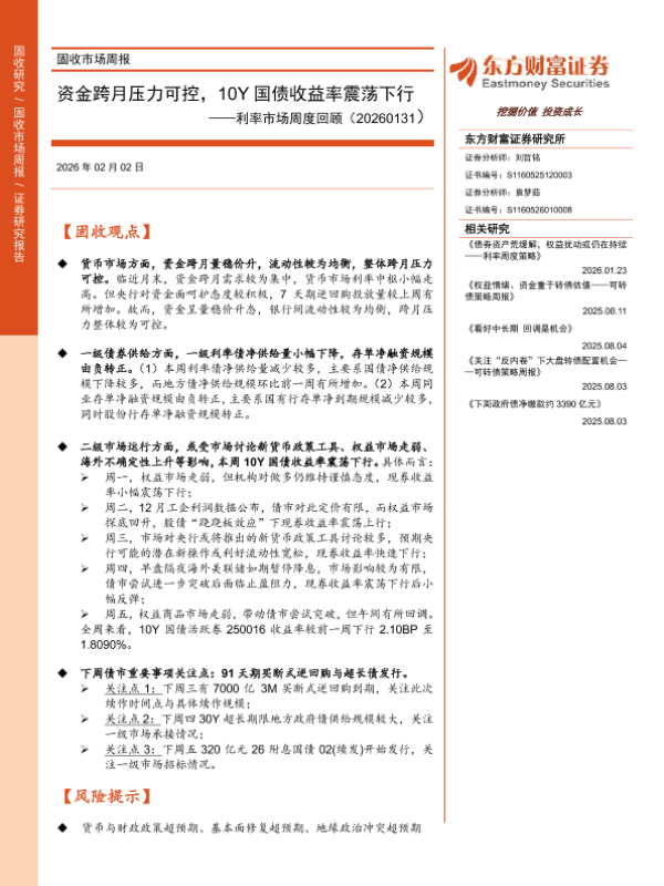 【东方财富证券】【202602】资金跨月压力可控,10Y国债收益率震荡下行-18页 证券期货研究报告