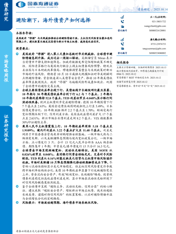 【国泰海通证券】【202510】避险潮下,海外债资产如何选择-12页 证券期货研究报告