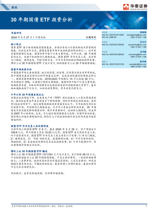 【华泰证券】【20240327】固收专题研究:30年期国债ETF投资分析-16页 行业研究